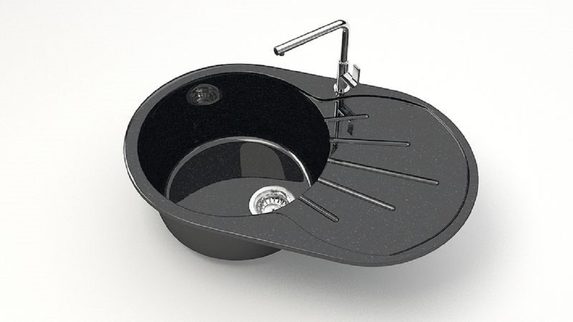 Мойка глянцевая BERGG Z110 черный овальная с крылом 730х215х450 мм B110G004 + комплект