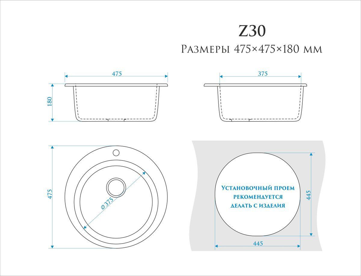 Мойка круглая BERGG Z30 диаметр 475 мм светлый графит B030Q021-K + комплект