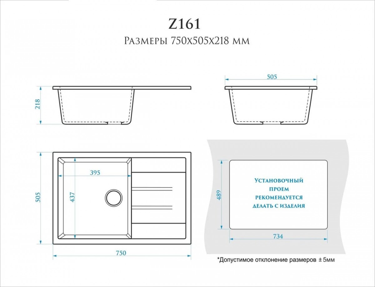 Ширина мойки, мм - 505