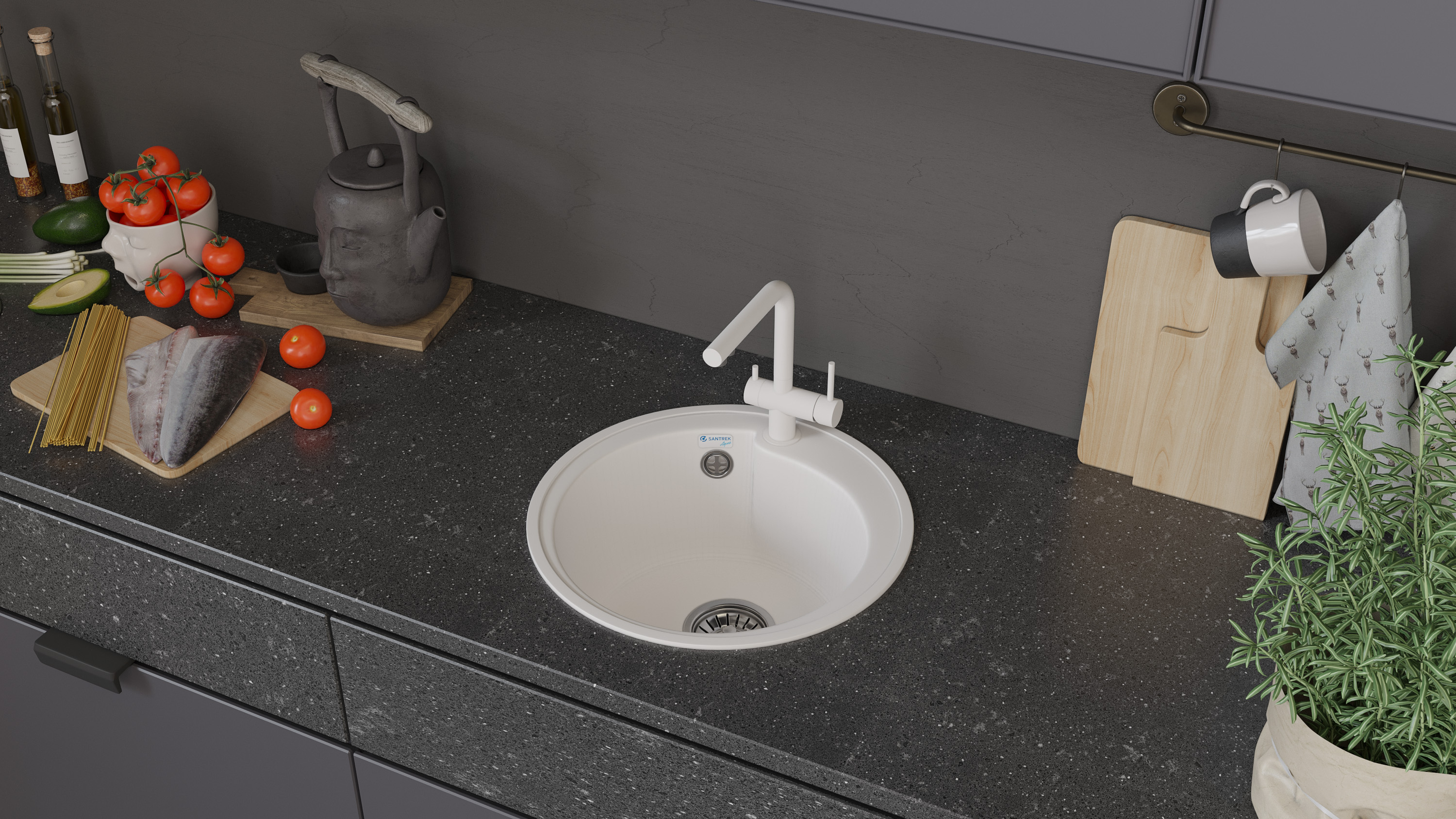 Мраморная мойка SANTREK помогает в обустройстве стильной и практичной зоны для мытья посуды и продуктов. Для хозяек она создает не только практичность, но и эстетическое удовольствие при использовании.