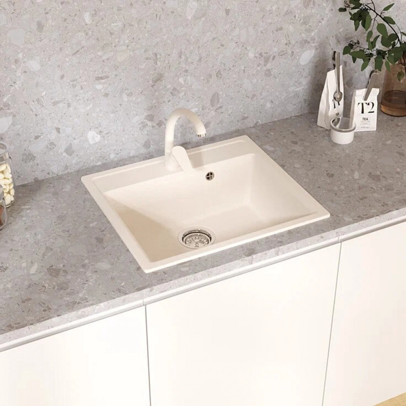 Мойкa прямоугольная УЛЬТРА белый камень 56.5х49.5см ML-GMU04 (глуб. чаши 175) + комплект