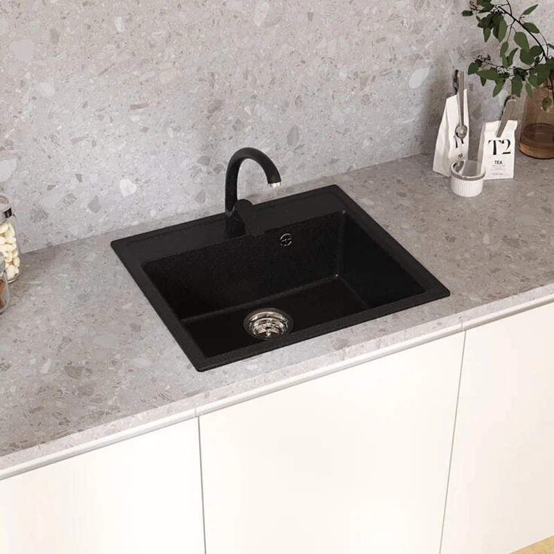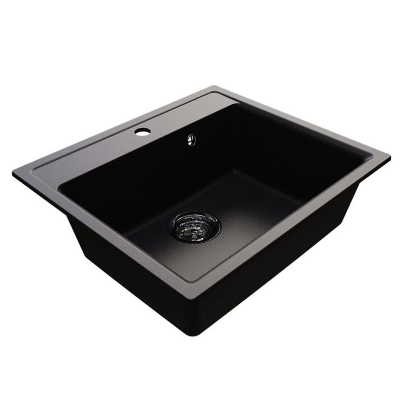 Мойкa прямоугольная УЛЬТРА черный камень 56.5х49.5см ML-GMU04 (глуб. чаши 175) + комплект