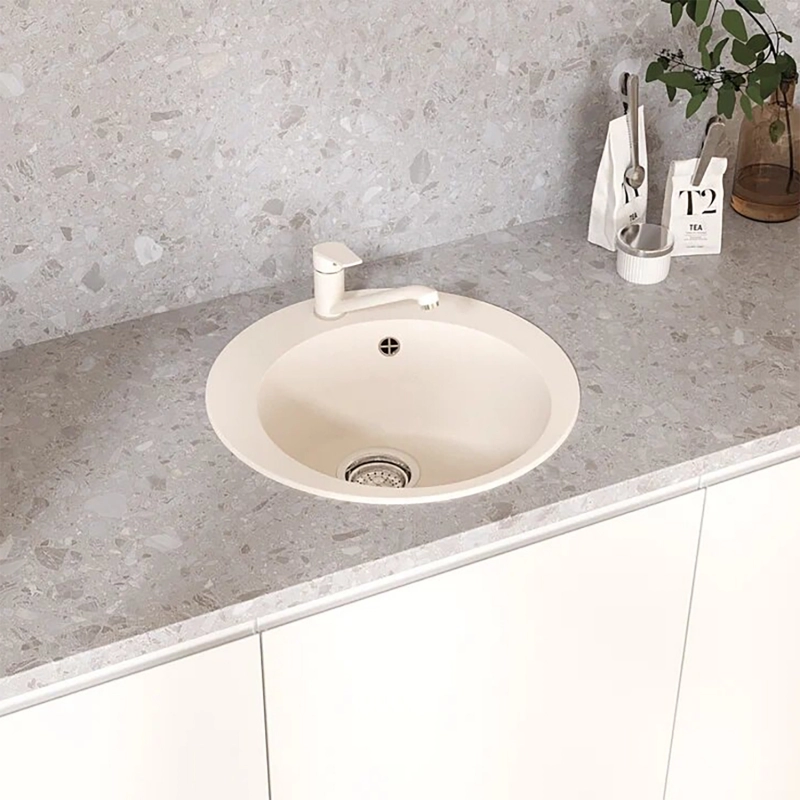 Компактная круглая мойка MIXLINE УЛЬТРА с отверстием под смеситель отлично подходит для небольшой кухни. Материал мойки представляет из себя искусственный камень, который является композитом на основе натурального мрамора и связующих смол. Искусственный камень существенно снижает уровень шума при падении струи воды. Специальное покрытие гелькоут защищает поверхность мойки от загрязнений и бытовых царапин, делая уход за мойкой легким и простым. Данная мойка имеет современный минималистичный дизайн, а установка в шкаф шириной от 45 см дает возможность осуществить монтаж мойки практически в любую мебельную базу и открывает широкий спектр возможностей при проектировании кухни. Заводская гарантия составляет 3 года, а срок службы данной мойки, при соблюдении основных правил ухода за ней, составляет более 10 лет.