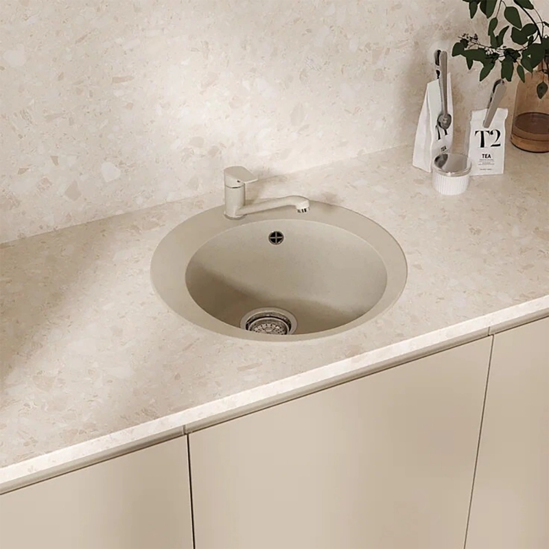 Мойкa круглая УЛЬТРА бежевый камень 47.5см ML-GMU01 (глуб. чаши 170) + комплект