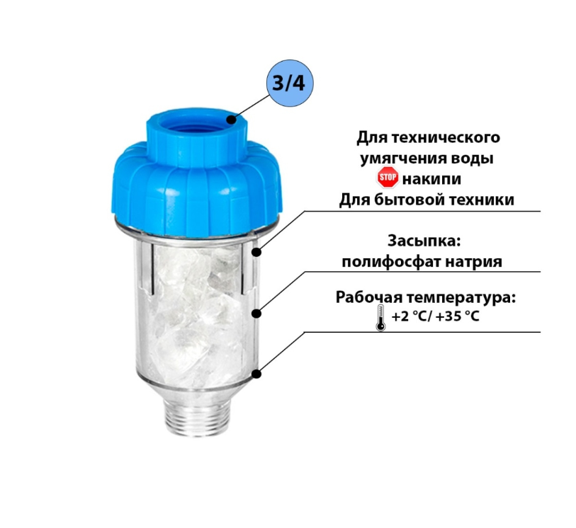 Фильтр дозатор АКВАБРАЙТ ПОЛИФОСФАТА для стиральных и посудомоечных машин 3/4 АБФ-СТИРАЛ