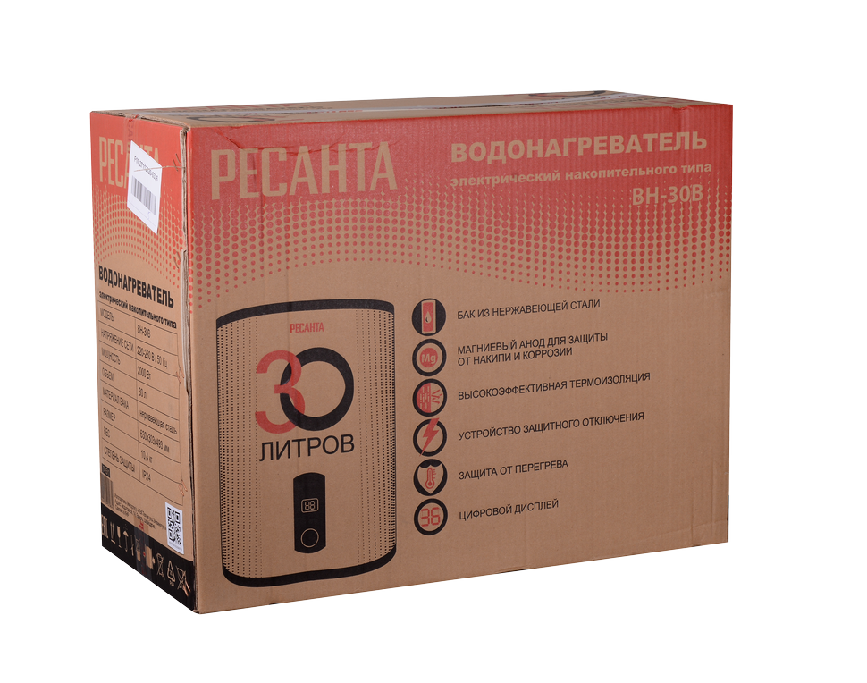 Водонагреватель "РЕСАНТА" накопительный 30 Л 2кВт ВН-30В (бак нерж.) 74/5/1