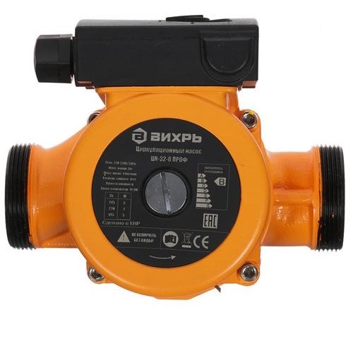 Циркуляционный насос Вихрь ЦН-32-8 предназначен для обеспечения циркуляции воды в системах отопления, круговых трубопроводах горячего и холодного водоснабжения, центральных отопительных установках и системах перекачки промышленных вод, системах кондиционирования, охлаждения. Насос представляет собой компактное устройство с всасывающей и нагнетающей функциями, вода перекачивается при помощи вращения рабочего колеса электродвигателем насоса. Насос имеет три скорости работы, выбираемые ручным переключением вращающейся ручки на клеммной коробке.