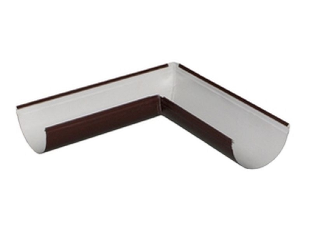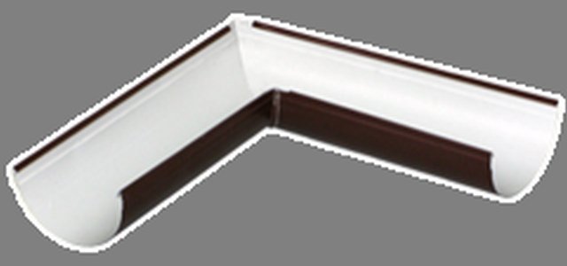 Угол желоба устанавливается на внешних и внутренних углах кровли и предназначен для соединения желобов под углом 90 градусов в целях изменения направления движения воды.