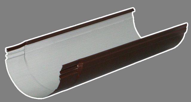 Желоб полукруглый предназначен для сбора дождевой воды с кровли. Желоб фиксируется на крюках, установленных с промежутком 600-900мм и обеспечивающих уклон 5 , мм на погонный метр.
