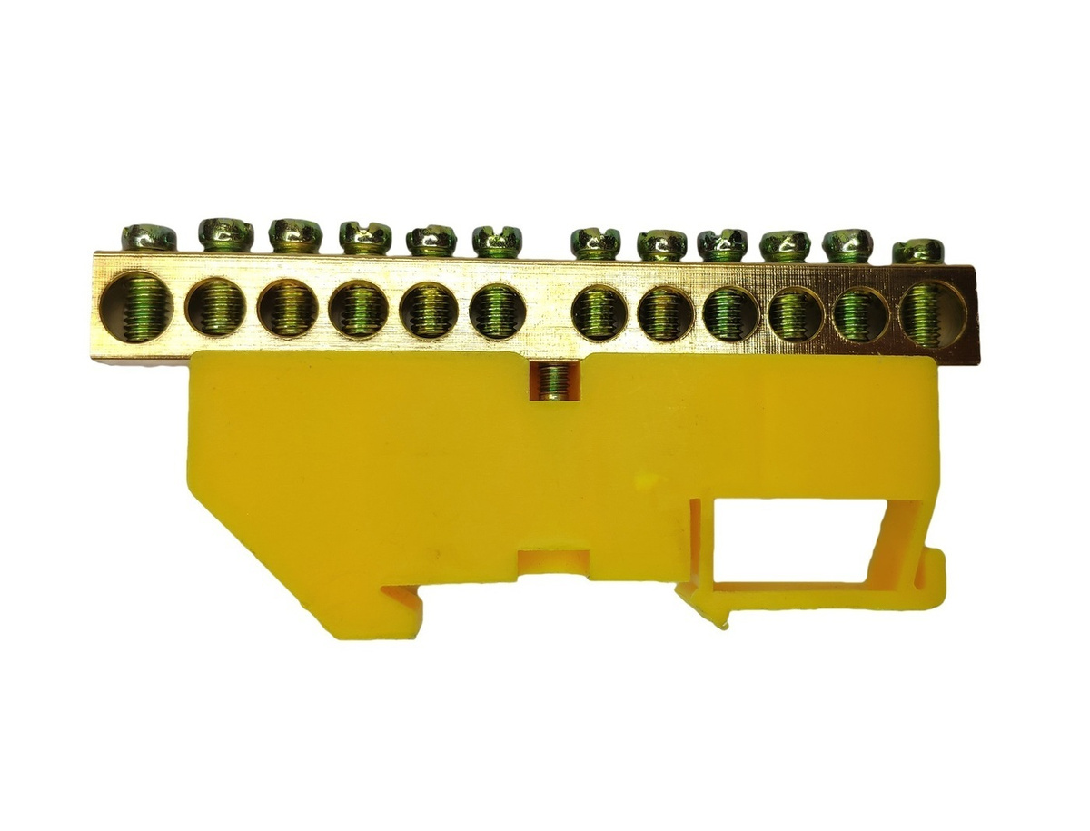 Шина PE земля на желтом DIN-изоляторе 8х12мм 12каб.выводов "IEK" ШНИ-6х9-12-Д-Ж