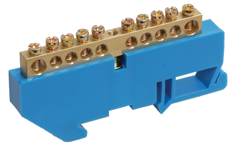Шина N нулевая 6*9мм на синем DIN-изоляторе 10 каб.выводов "IEK" ШНИ-6х9-10-Д-С