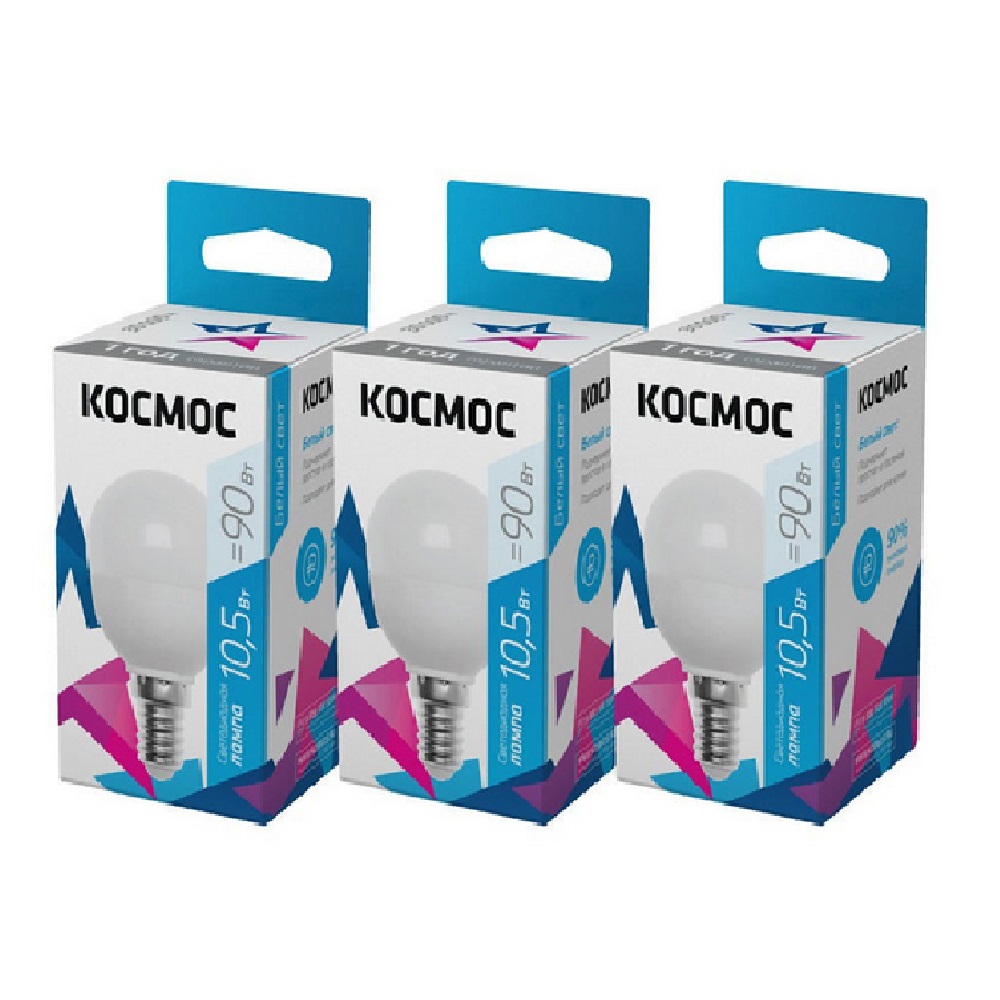 ЛАМПА СВЕТОДИОДНАЯ "КОСМОС" шар E14 10,5W(10W) (860lm) 4500K ХОЛ.СВЕТ LkecLED10.5wGLE1445