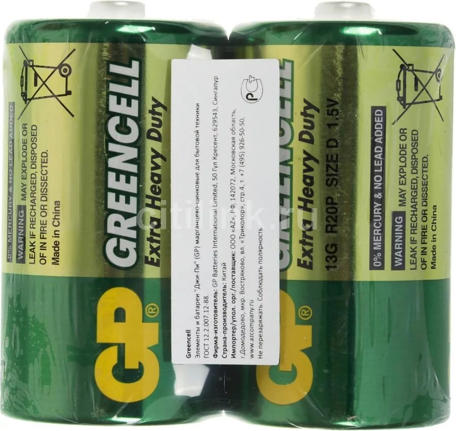 БАТАРЕЙКИ GP 13G-2S2 ТИПОРАЗМЕРА D 2ШТ В ПЛЕНКЕ /072/