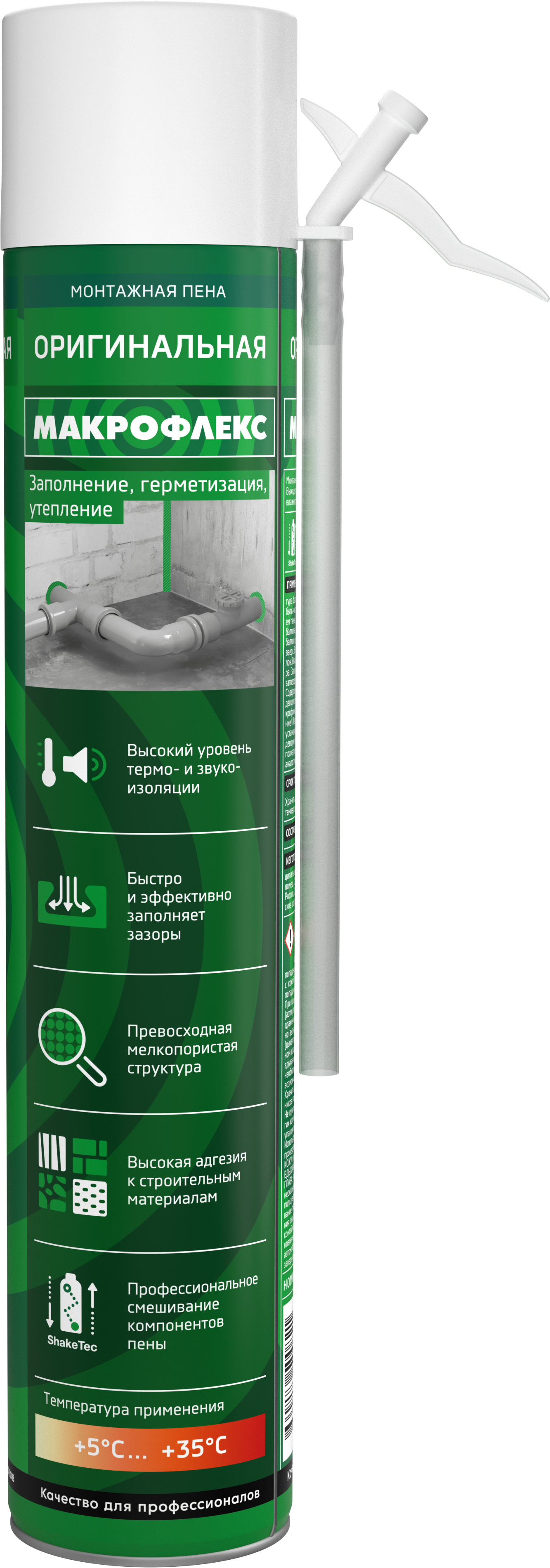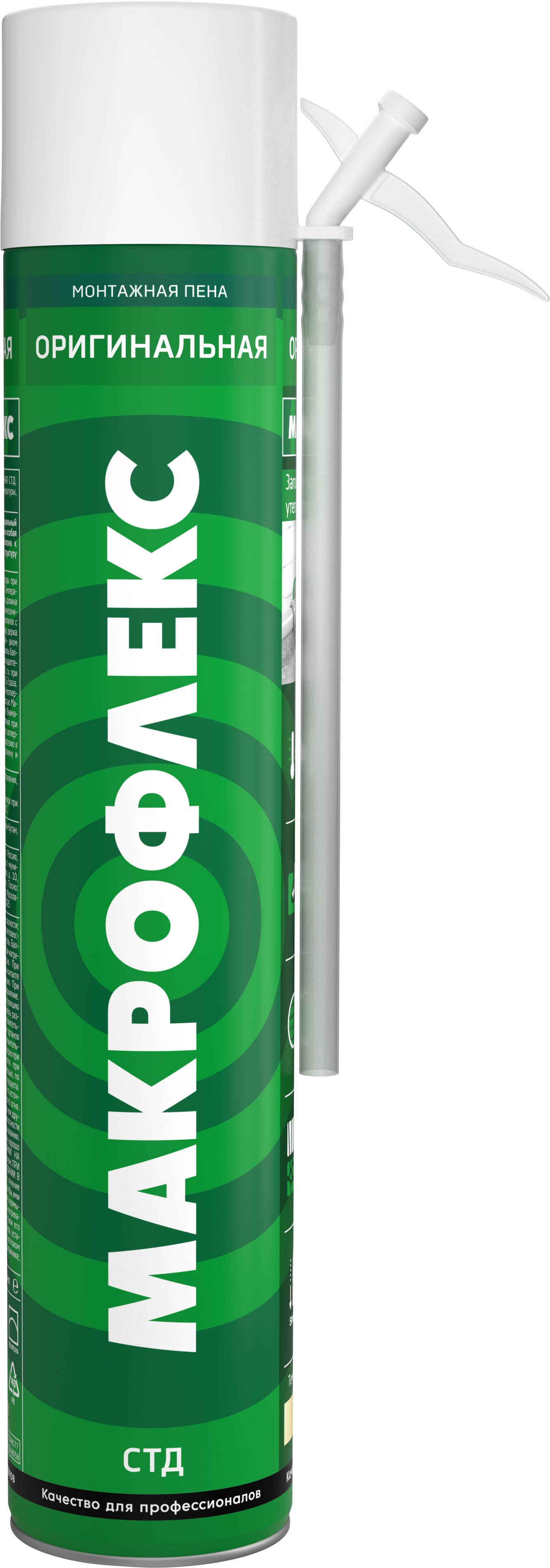 МАКРОФЛЕКС СТД всесезонная представляет собой готовую к применению однокомпонентную полиуретановую пену, затвердевающую под воздействием влажности воздуха.