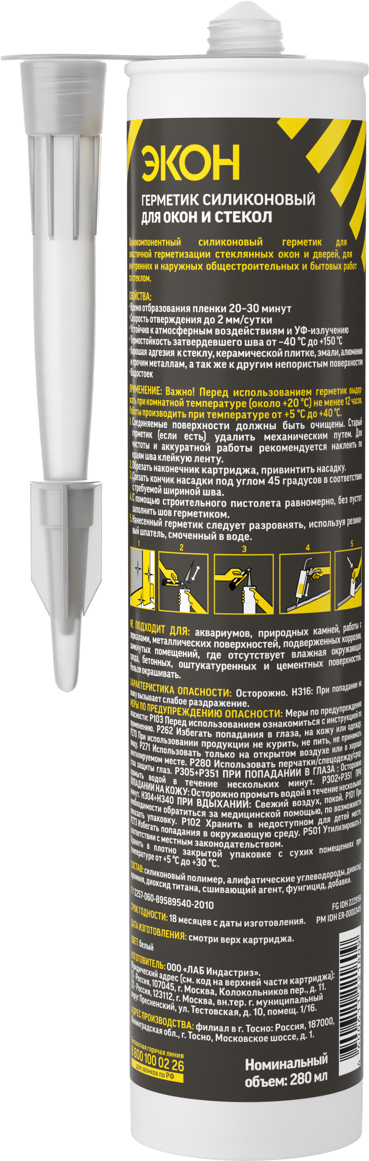 Герметик силиконовый ЭКОН для окон и стекол белый 280мл /2229156/