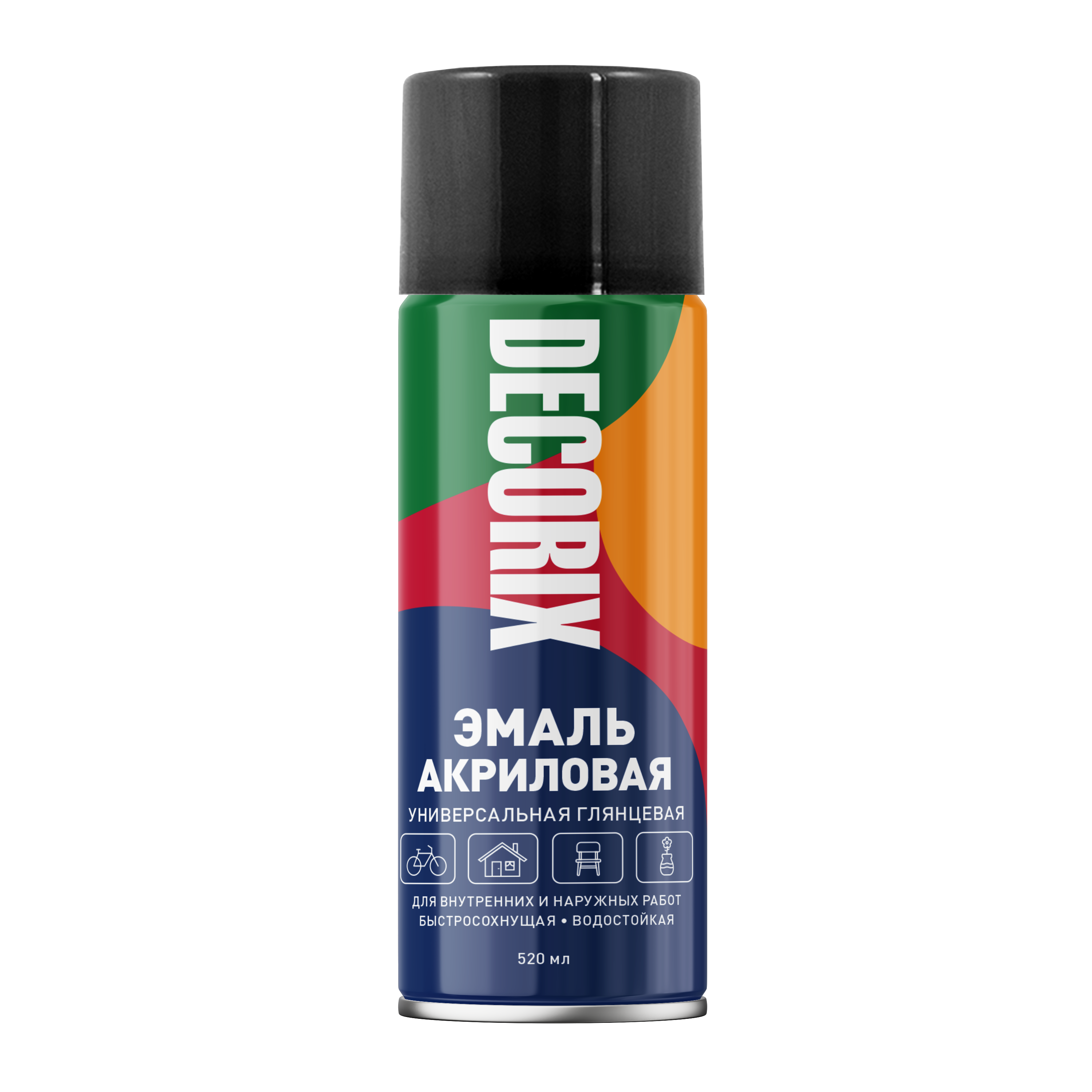 Универсальная акриловая эмаль DECORIX предназначена для бытового применения, декоративно-оформительских работ, строительства и ремонта. Идеально подходит для поверхностей из металла, древесины, бетона, камня, стекла, керамики и некоторых видов пластмасс.