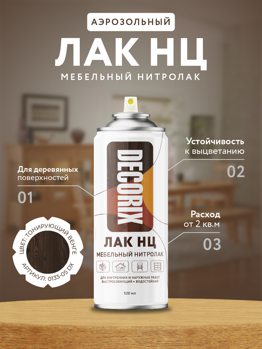 Лак НЦ мебельный(нитролак) Decorix аэрозоль тонирующий венге 520мл