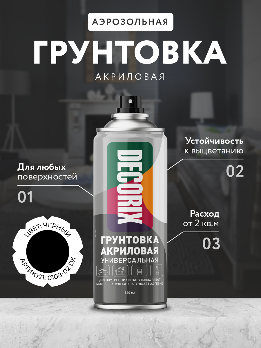 Грунтовка-аэрозоль Decorix А-802 черный 520мл