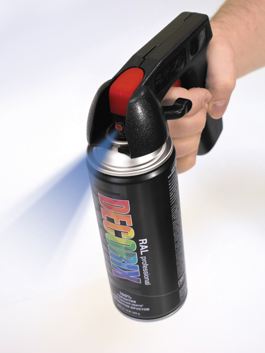 Предназначен для комфортного и быстрого распыления аэрозольных красок, клеёв, очистителей, инсектицидов и других видов аэрозольной продукции.