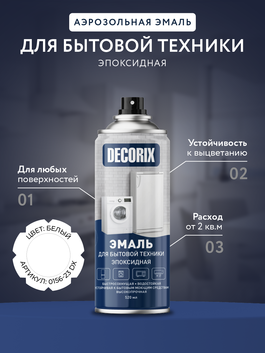 Высококачественная эмаль для бытовой техники DECORIX® предназначена для реставрации и окрашивания холодильников, морозильных камер, микроволновых печей, стиральных машин, вытяжек и т. п.;