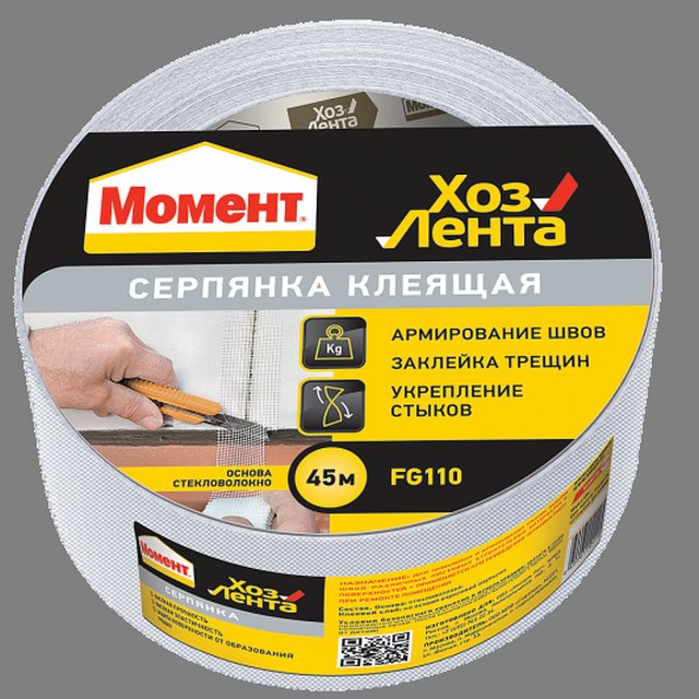 Специальная самоклеющаяся лента для ремонтных и отделочных работ. Используется в строительстве как армирующий материал при штукатурных работах.