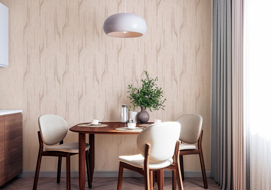 Вертикальный рисунок с четким ритмом плавных линий визуально вытягивает потолок, наполняя помещение воздухом. Пространство становится архитектурно выверенным и упорядоченным. Это особенно эффектно смотрится в стандартных по высоте гостиных и обеденных зонах. Приятны