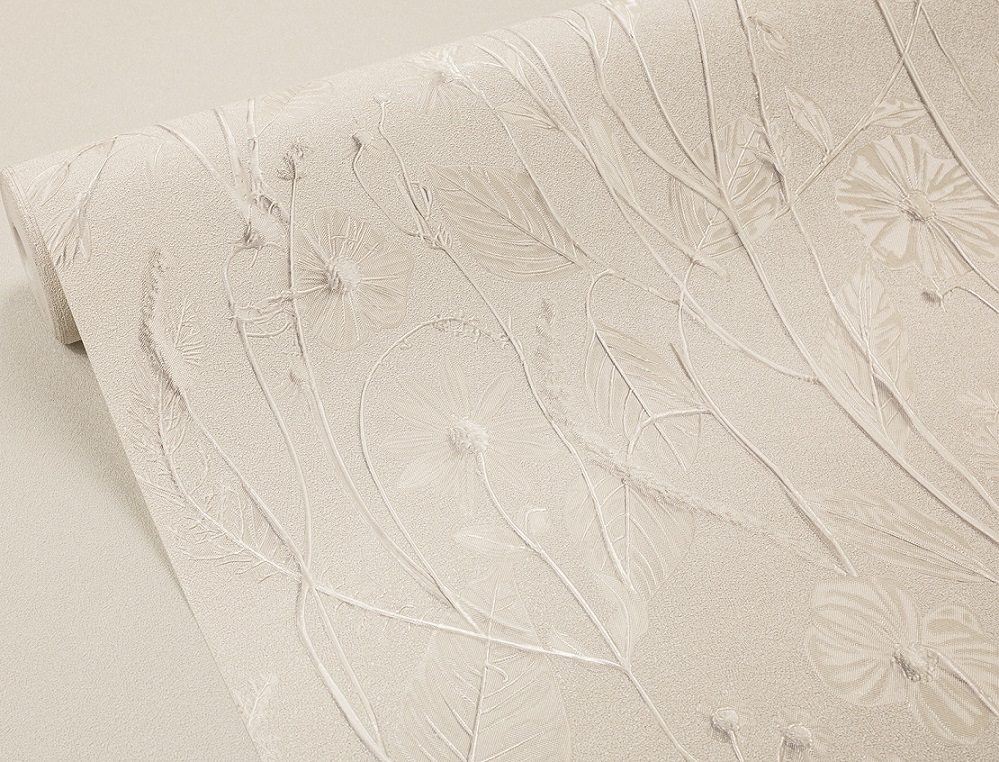 Коллекция Avalon—это картина, написанная самой природой. На поверхности обоев раскрывается изящный растительный узор: тонкие стебли, утончённые листья и нежные цветы — воздушные, полупрозрачные, словно сотканные из утреннего тумана. Каждый бутон в рисунке кажется уникальным: одни — только распускаются, робко склоняясь набок, другие — раскрыли свои лепестки.Палитра коллекции выдержана вприродных оттенках: серо-зелёной, жемчужно-бежевой, дымчато-серой, а перламутровые акценты и лёгкие отблески подчеркивают рельеф. Раппорт 64