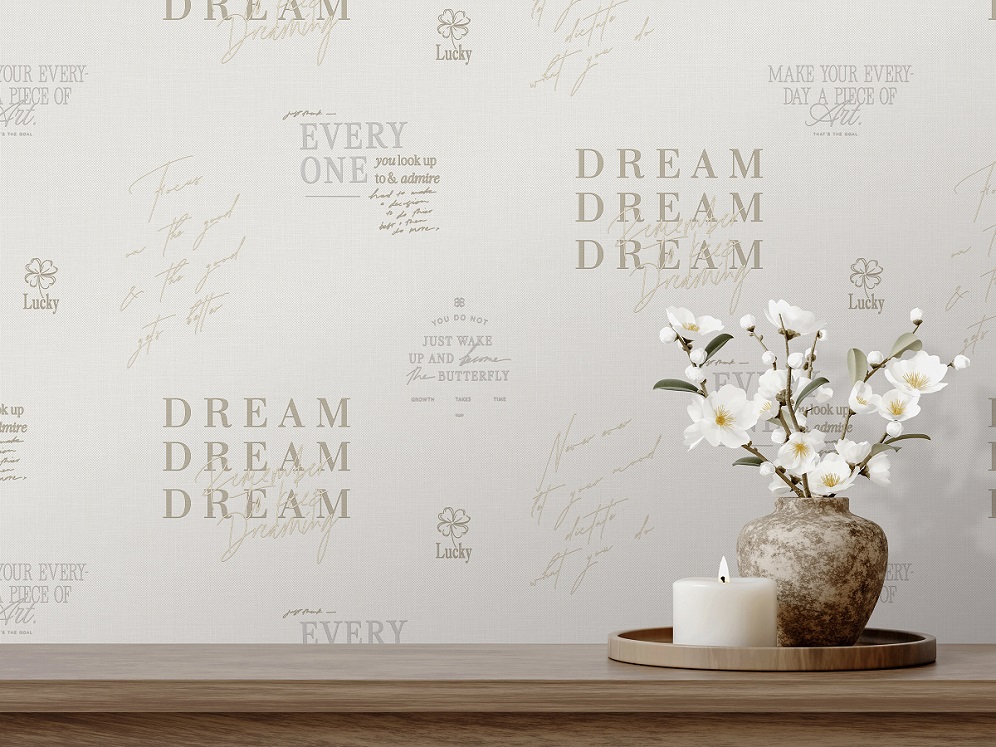 Новая модная версия тематического дизайна в коллекции Dream от Victoria Stenova. Эти обои созданы, чтобы дарить настроение и формировать атмосферу. Мы уделили большое внимание деталям. Металлизированные надписи на мягкой вертикальной текстильной фактуре, похожей на трикотаж, создают эффект уюта, легкости и стиля одновременно. Раппорт 64
