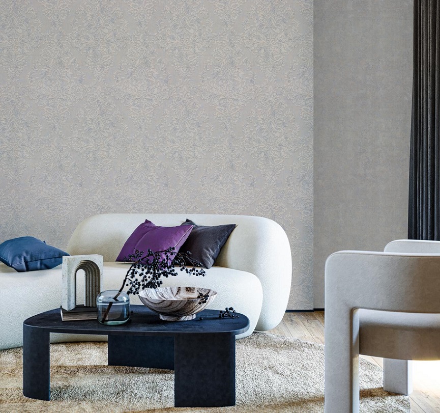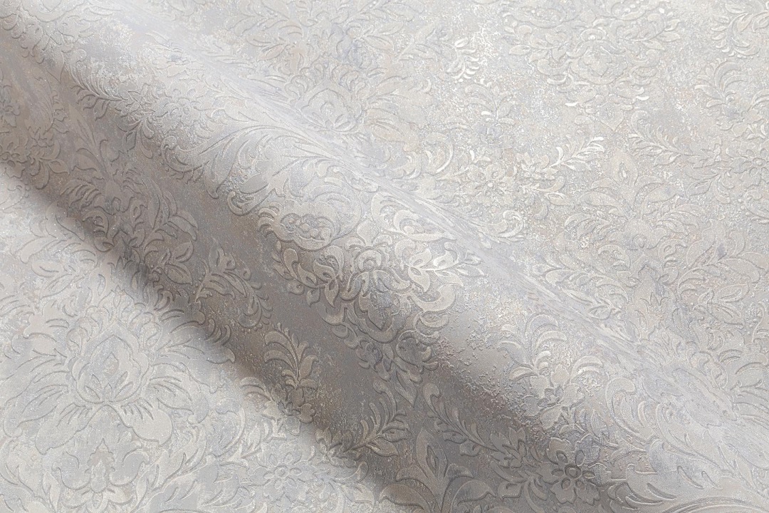 Изящный классический мотив выразительно проступает на фактуре – восточный дамаск словно парит над поверхностью, почти сливаясь со стеной. Тонкая игра света и тени делает стены визуально сложнее и выразительно подчеркивает рельеф узора. Объемный рельефный мотив с тактильным рельефом смотрится вышитым на фактуре благородной парчи. При свете поверхность мерцает блестящими металлизированными нитями, а пластичные завитки рисунка образуют гармоничное переплетение форм.