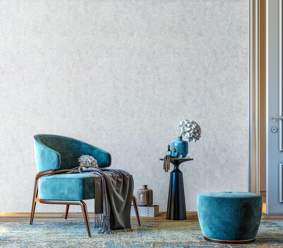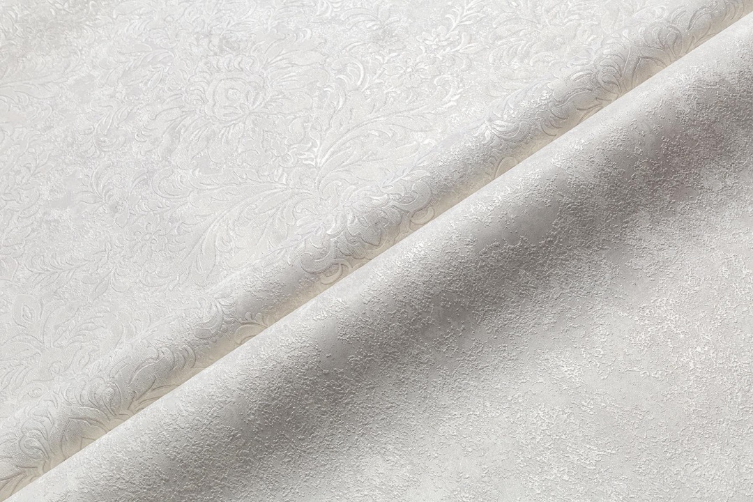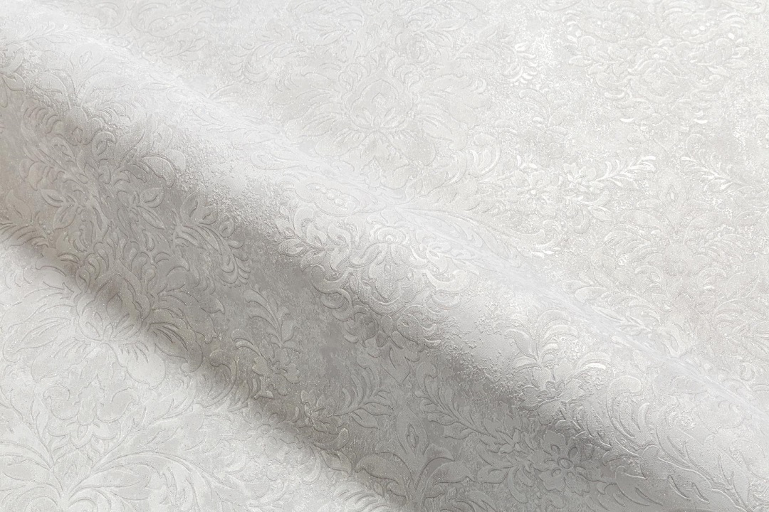Изящный классический мотив выразительно проступает на фактуре – восточный дамаск словно парит над поверхностью, почти сливаясь со стеной. Тонкая игра света и тени делает стены визуально сложнее и выразительно подчеркивает рельеф узора. Объемный рельефный мотив с тактильным рельефом смотрится вышитым на фактуре благородной парчи. При свете поверхность мерцает блестящими металлизированными нитями, а пластичные завитки рисунка образуют гармоничное переплетение форм.