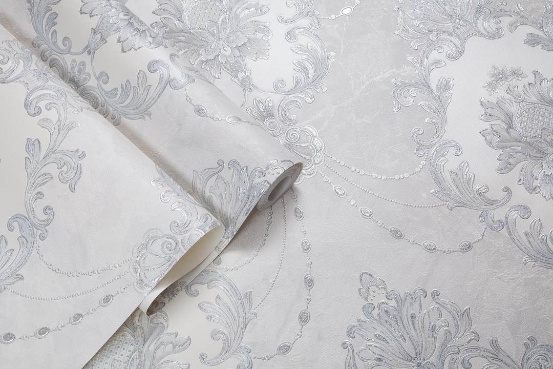 Блистательный узор коллекции обоев Medina сияет как южное солнце в Лучезарной Медине. Маковки его вензелей и дамасков густо покрыты зеркальным глиттером и создают эффект драгоценной потали. Рельеф рисунка скульптурный, словно вылеплен вручную на поверхности стены. Он детально подчеркивает пластичные лепестки орнамента и мраморные узоры фона. Раппорт 64.