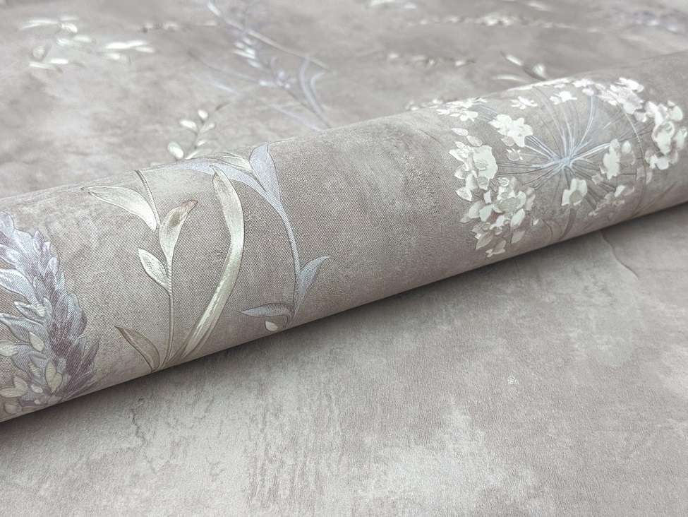 Коллекция Бенефит Линда— выбор настоящих романтиков, влюбленных в природу и ценящих ее сдержанную, изысканную эстетику. Нежный, словно акварельный, мотив луговых трав становится воплощением естественности, привнося в пространство умиротворение и безмятежность. Дизайн привлекает игрой текстур и света: тонкие, изящные силуэты стеблей и листьев мастерски подчеркнуты мерцающим перламутром. Этот деликатный эффект оживает в лучах света при движении, создавая эффект легкого бриза, колышущего травы. Матовый финиш фонового полотна придает глубину и благородную тактильность. Палитру коллекции Бенефит Линда составляют сложные, как бы припыленные, оттенки лаванды, натурального камня и серебристой зелени. Она создает нейтральный, но не скучный фон, который станет идеальной основой как для классического интерьера с деревянной мебелью и льняными тканями, так и для современного пространства в эко- или скандинавском стиле.