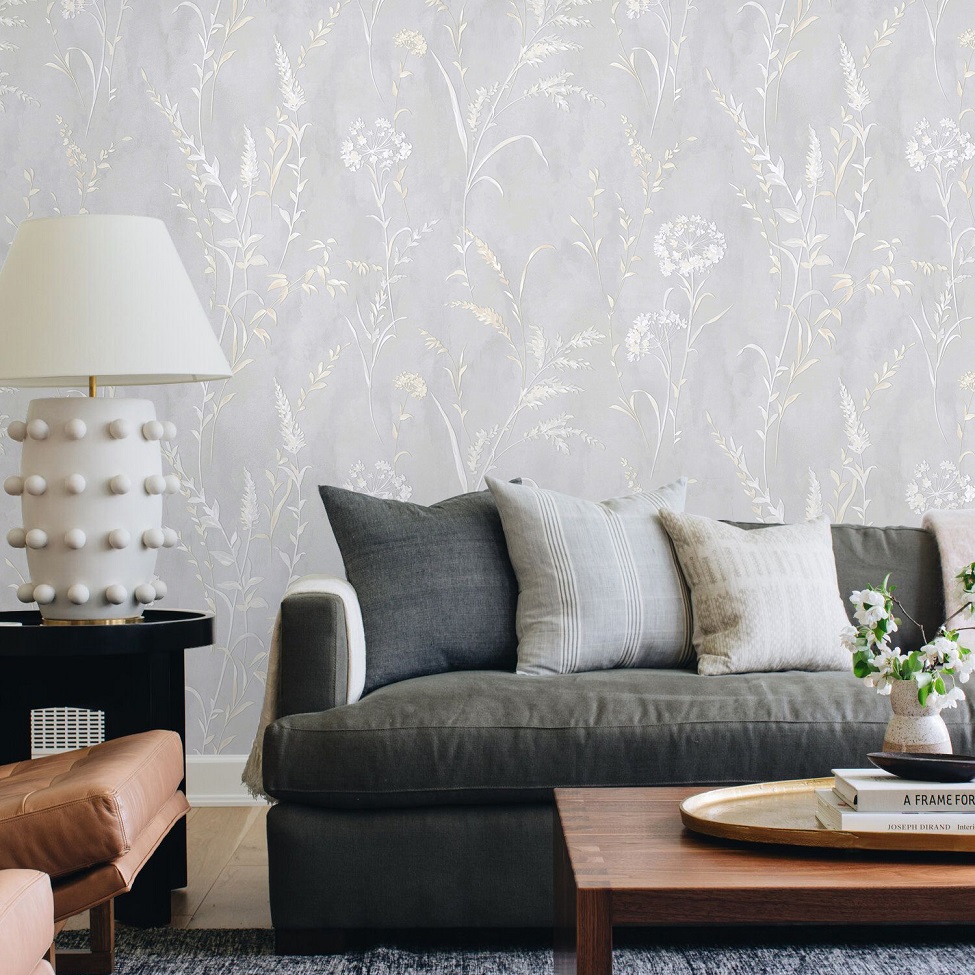 Коллекция Бенефит Линда— выбор настоящих романтиков, влюбленных в природу и ценящих ее сдержанную, изысканную эстетику. Нежный, словно акварельный, мотив луговых трав становится воплощением естественности, привнося в пространство умиротворение и безмятежность. Дизайн привлекает игрой текстур и света: тонкие, изящные силуэты стеблей и листьев мастерски подчеркнуты мерцающим перламутром. Этот деликатный эффект оживает в лучах света при движении, создавая эффект легкого бриза, колышущего травы. Матовый финиш фонового полотна придает глубину и благородную тактильность. Палитру коллекции Бенефит Линда составляют сложные, как бы припыленные, оттенки лаванды, натурального камня и серебристой зелени. Она создает нейтральный, но не скучный фон, который станет идеальной основой как для классического интерьера с деревянной мебелью и льняными тканями, так и для современного пространства в эко- или скандинавском стиле.