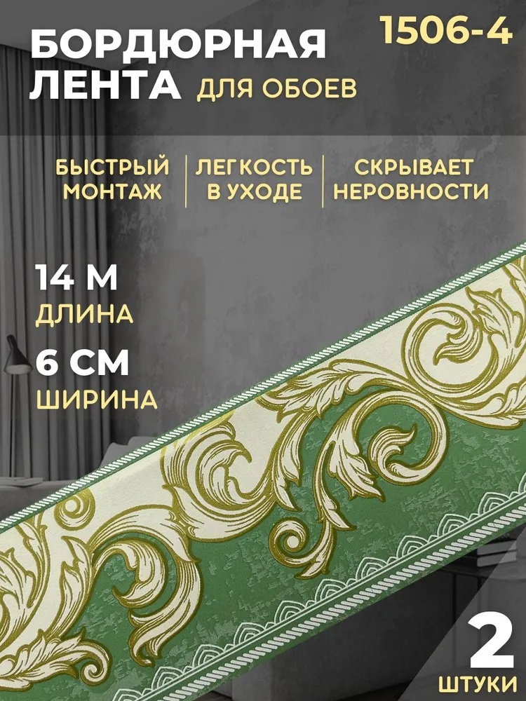 Бордюр бумажный декоративный зеленый 6смх14м Б1506-4