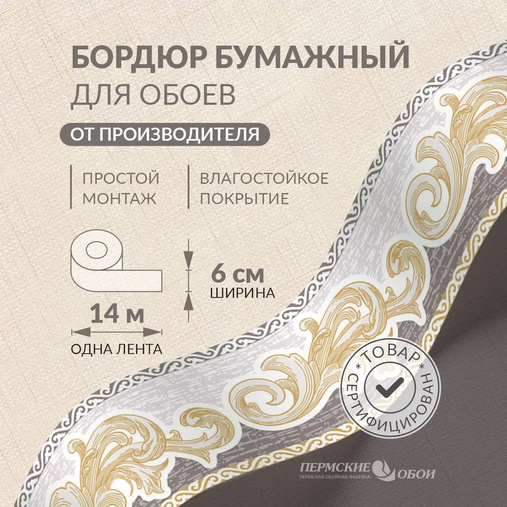 Бордюр бумажный декоративный серый 6смх14м Б3506-21