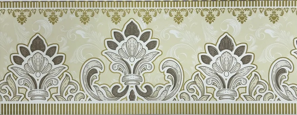 Бумажные обойные бордюры, различной ширины, предназначены для декорирования стен, используются в качестве горизонтальной ленты по кругу всей комнаты, которые могут быть расположены под потолком, по периметру картин или же на уровне спинок кресел.