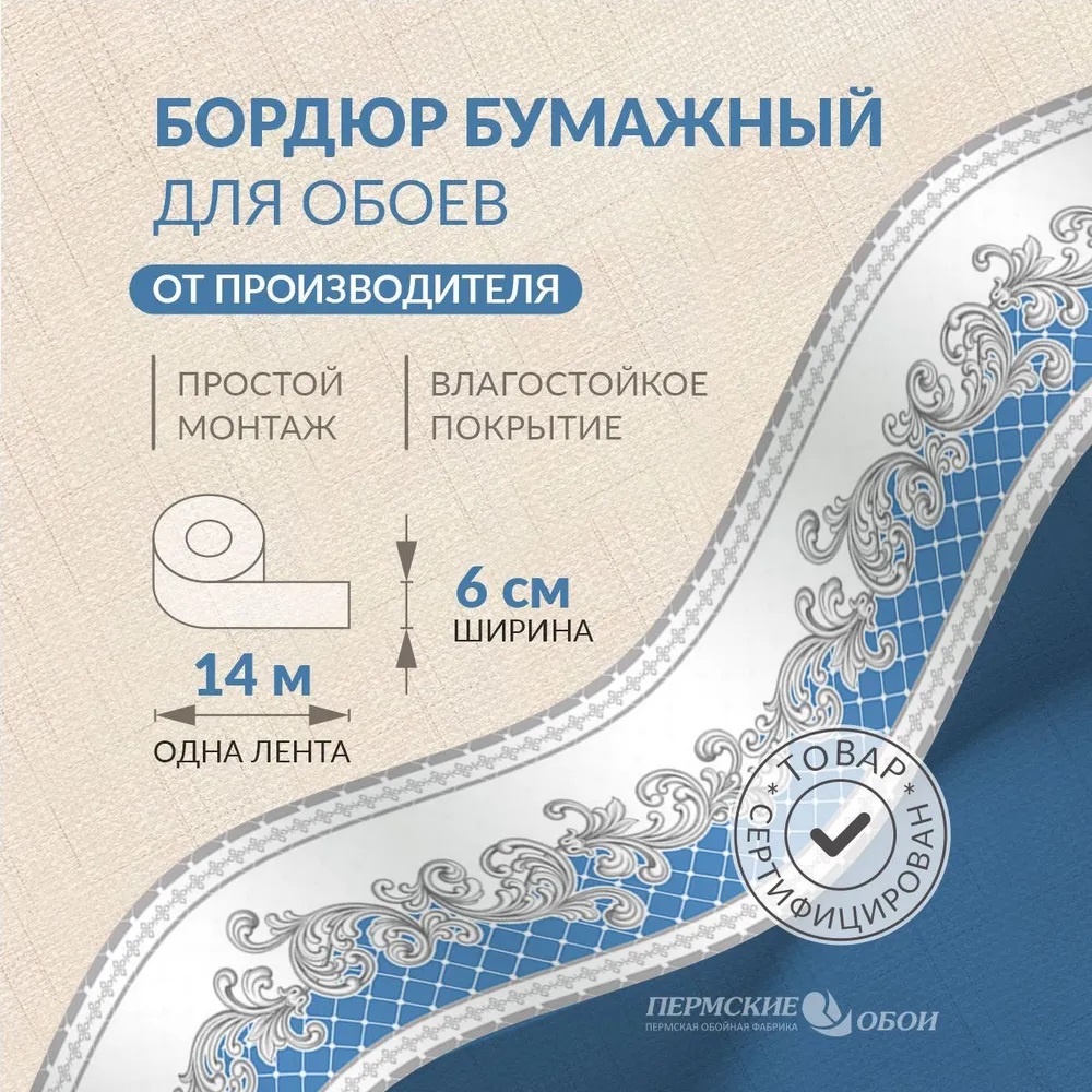 Бордюр бумажный декоративный синий 6смх14м 1306-7Б