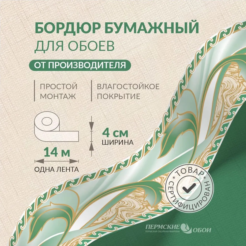 Бордюр бумажный декоративный зеленый 4смх14м Б2504-4