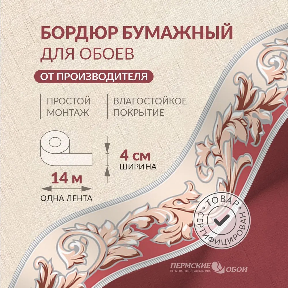 Бордюр бумажный декоративный красный 4смх14м Б1204-12