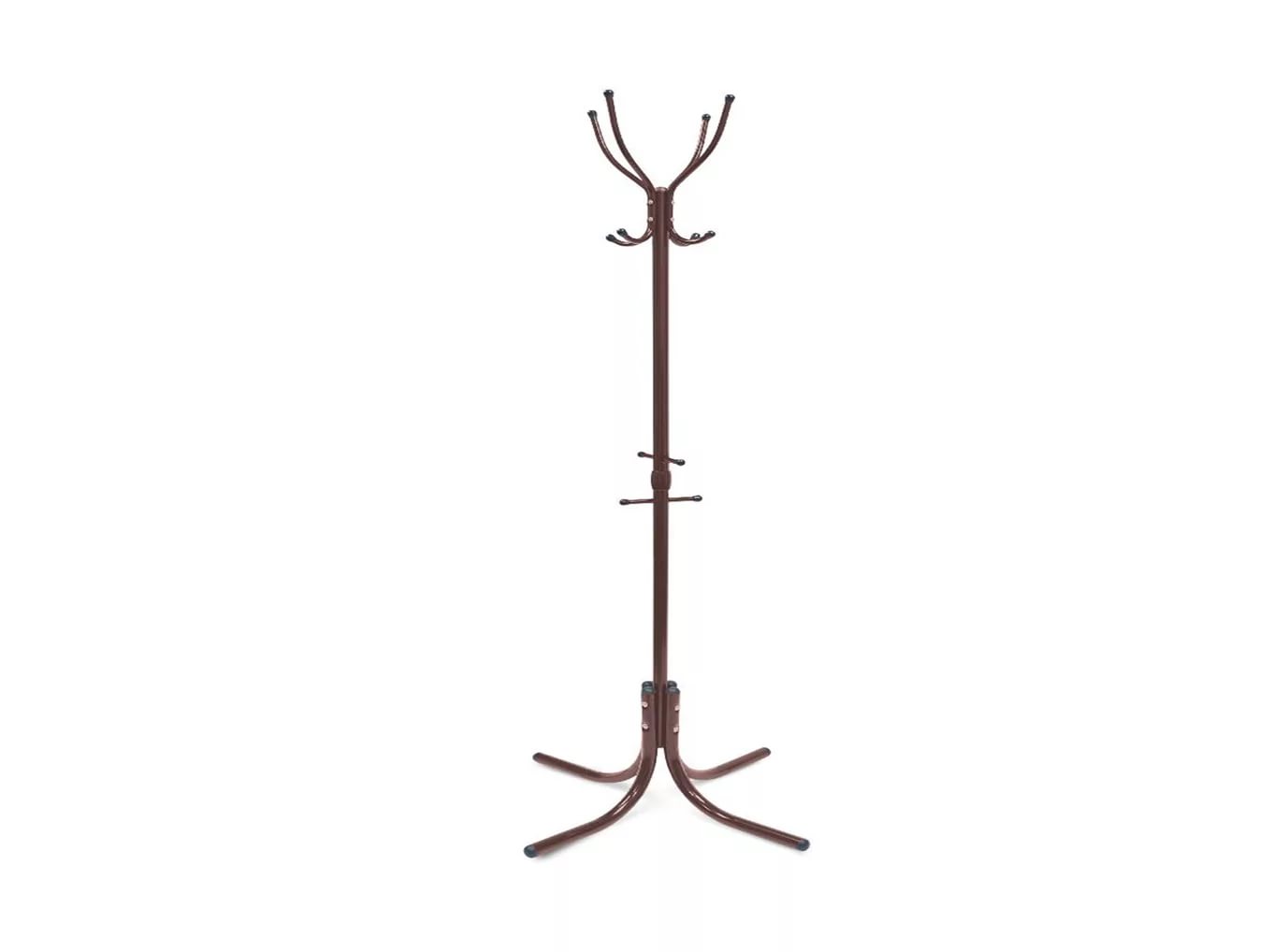 Напольная вешалка из металла предназначена для верхней одежды. Внизу предусмотрены крючки для сумок или зонтов.