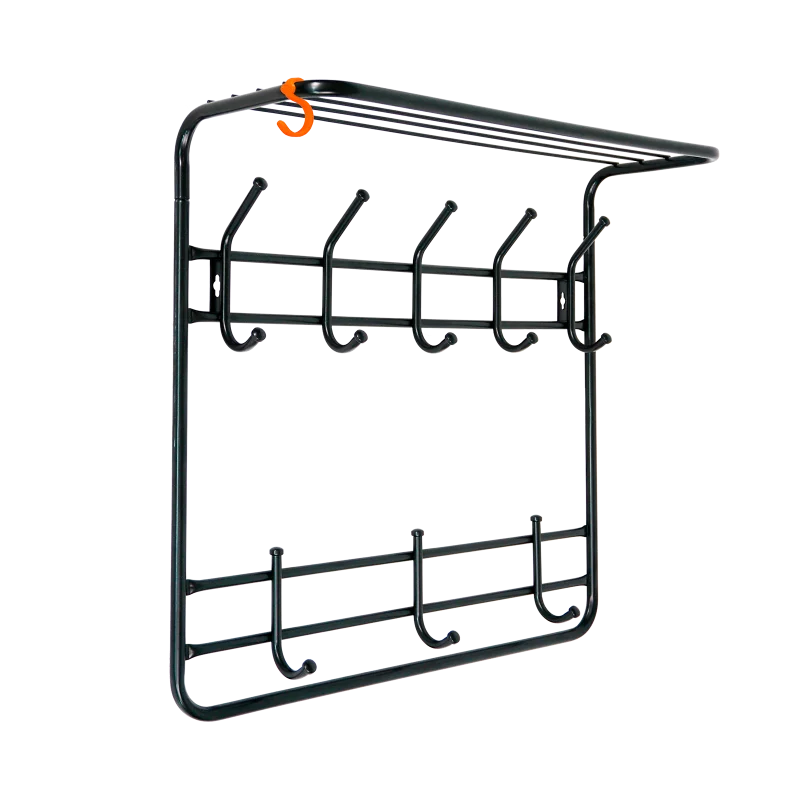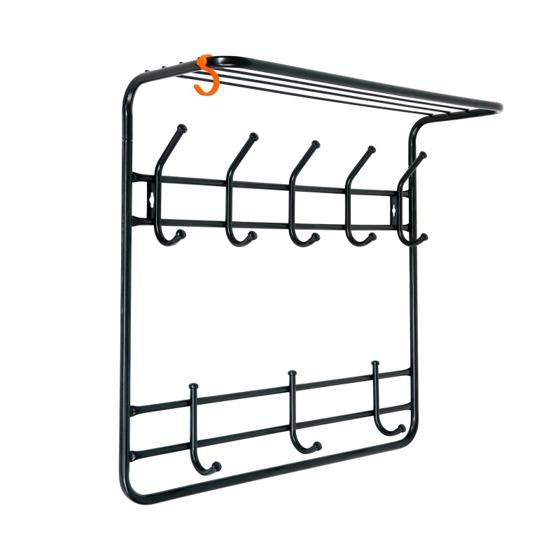 Двухъярусная настенная вешалка ЗМИ с полкой цвет черный ВСП8Ч предназначена для размещения одежды.
