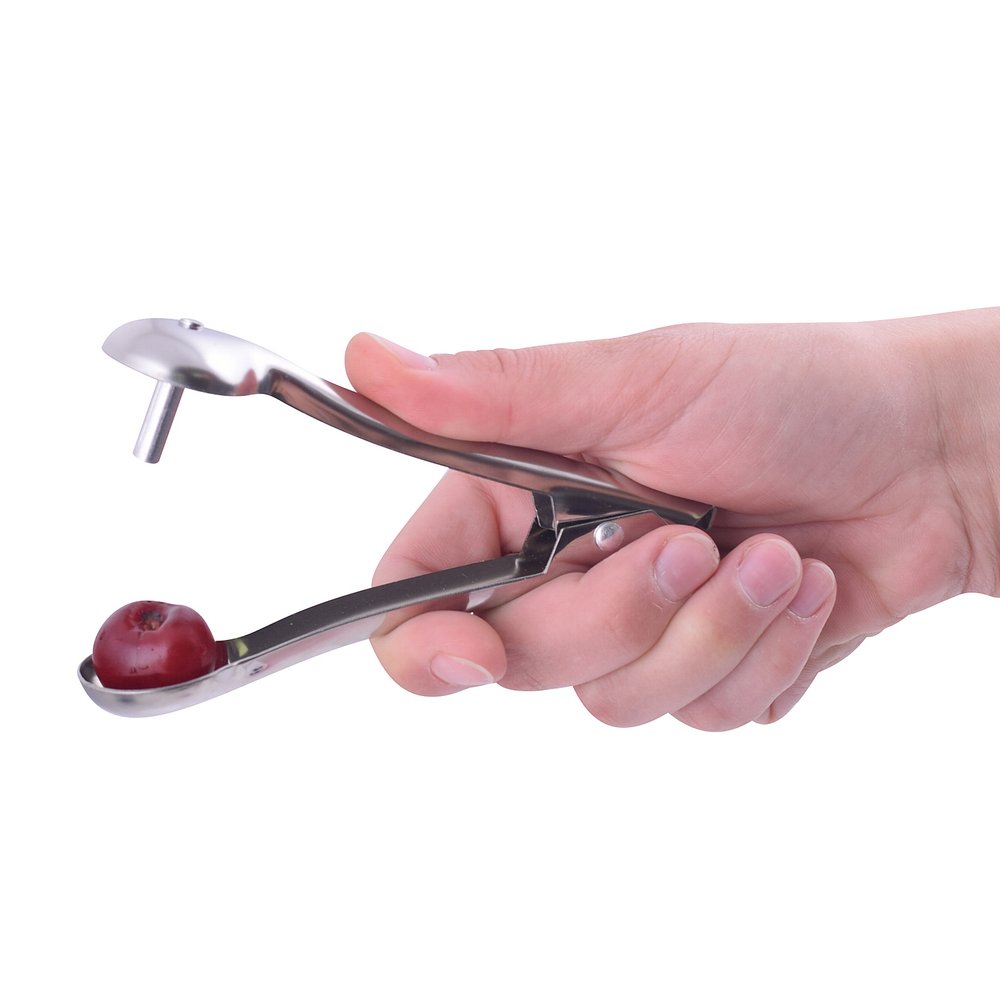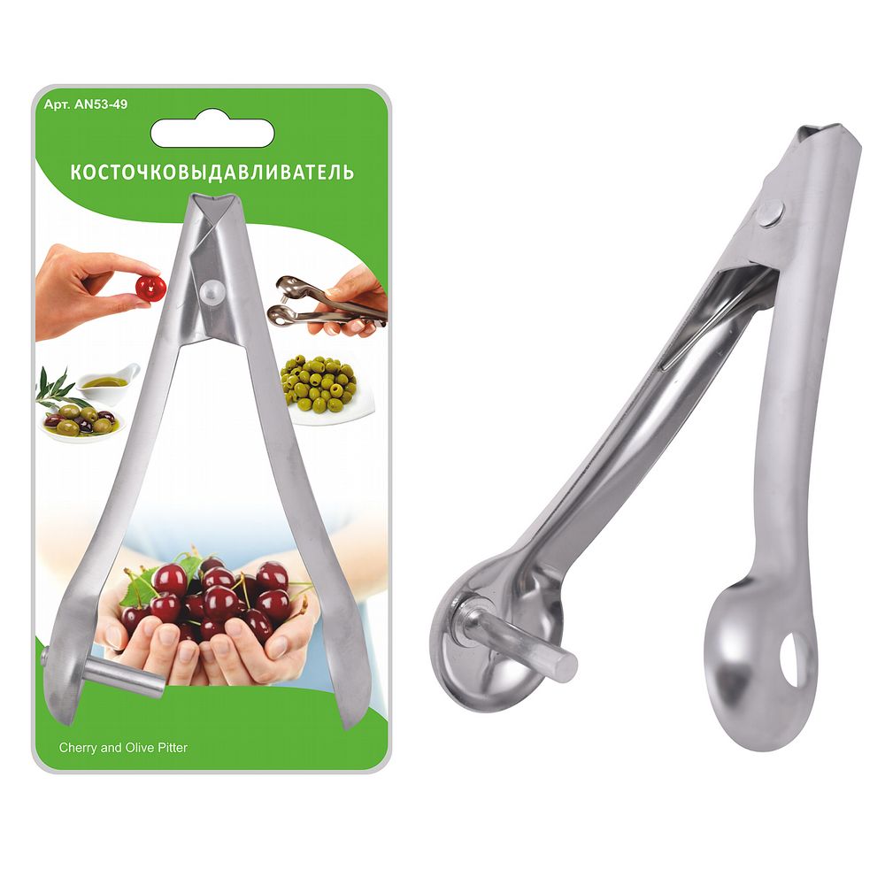 Любителям заготовок, ягодных десертов, джемов и компотов приходится сталкиваться с обработкой ягод, ведь их нужно помыть, почистить, убрать косточку и т.д. Если объем продуктов большой, такая работа покажется монотонной и рутинной. Сократить время на чистку ягод поможет специальный косточковыдавливатель, который одним движением удаляет косточку из вишни, черешни, оливок. Инструмент напоминает щипцы, на одной части расположен стержень, на другой отверстие, через которое выпадает косточка. Простота и надежность конструкции позволит быстро очистить ягоду с минимальным повреждением мякоти и без потери сока. Изготовлен из стали с хромированным покрытием.