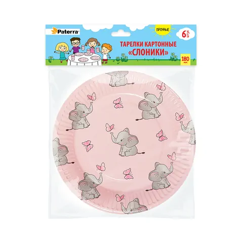 Набор тарелок бумажных СЛОНИКИ PATERRA 180мм 6шт 401-879