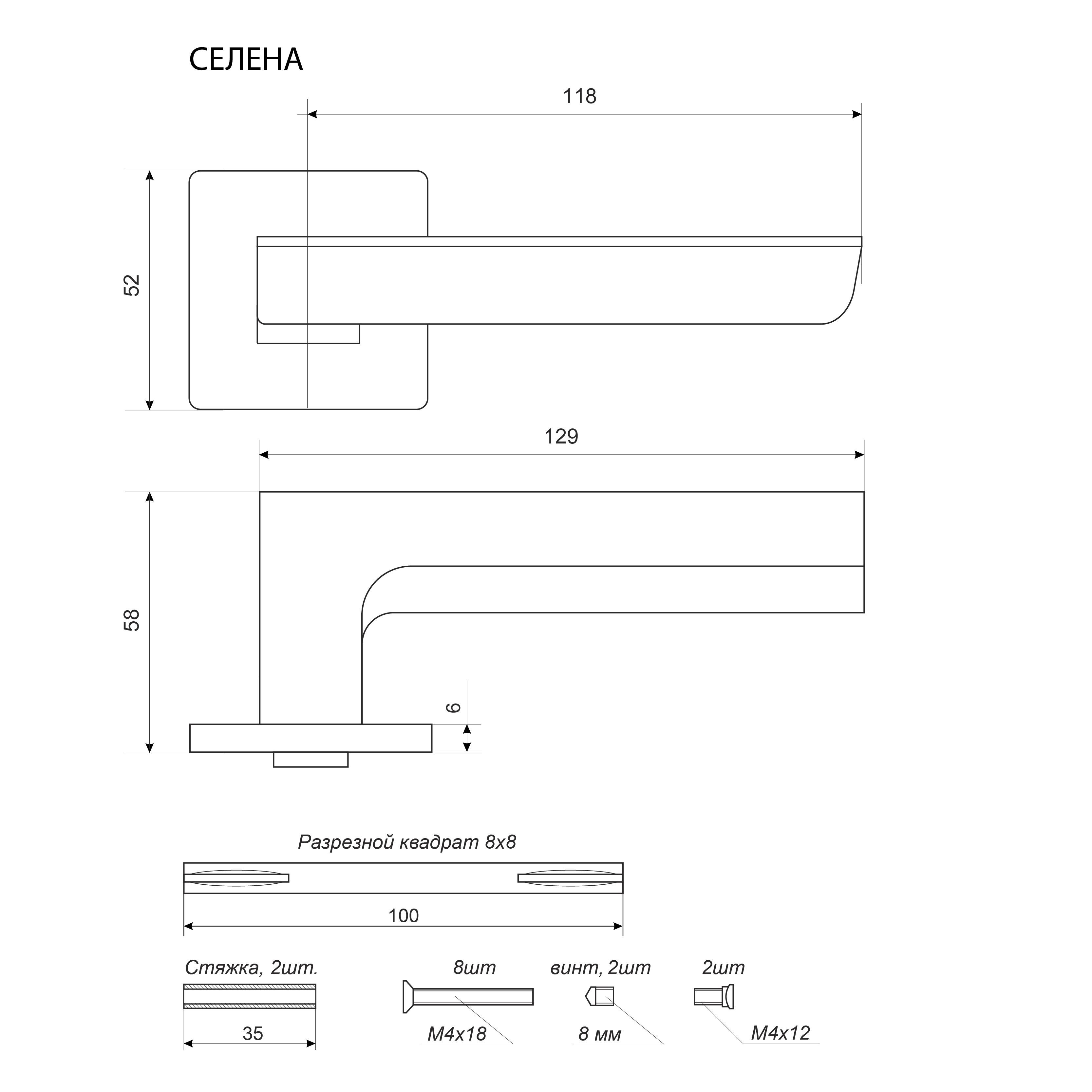 Ручки дверные на розетке черн.матовый АЛЛЮР АРТ "Селена" BL (81150) квадр. осн.