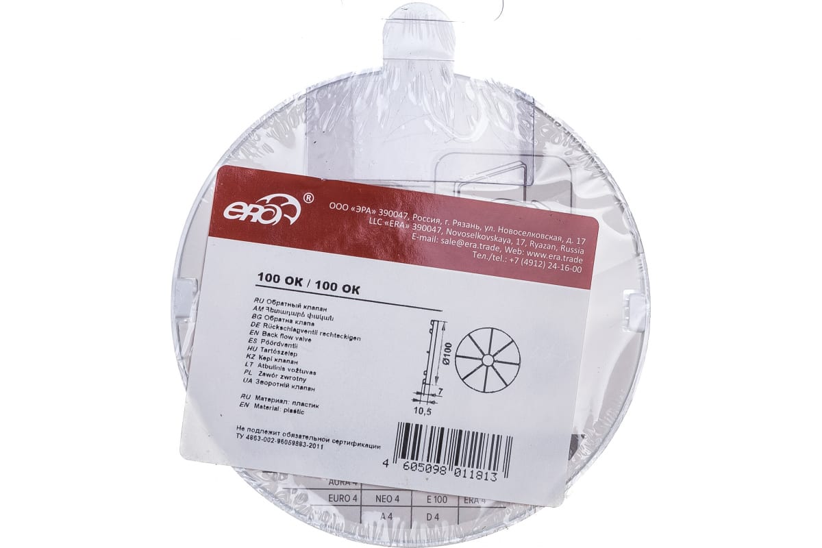 Клапан обратный ERA D100 100 ОК