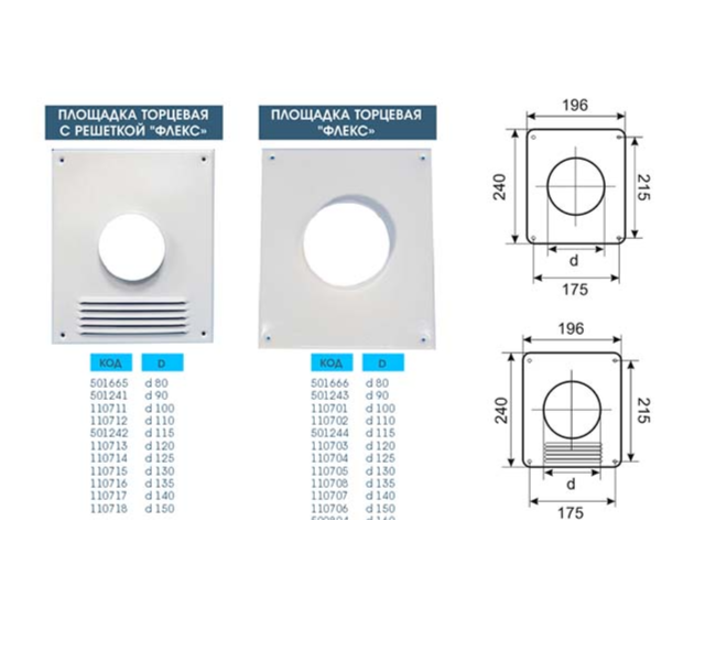 Торцевые площадки ТМ "Флекс" применяются для оформления выходных отверстий и присоединения воздуховодов при монтаже вентиляционных систем.