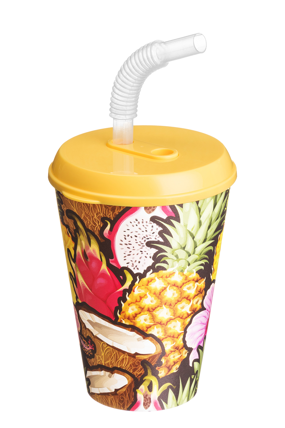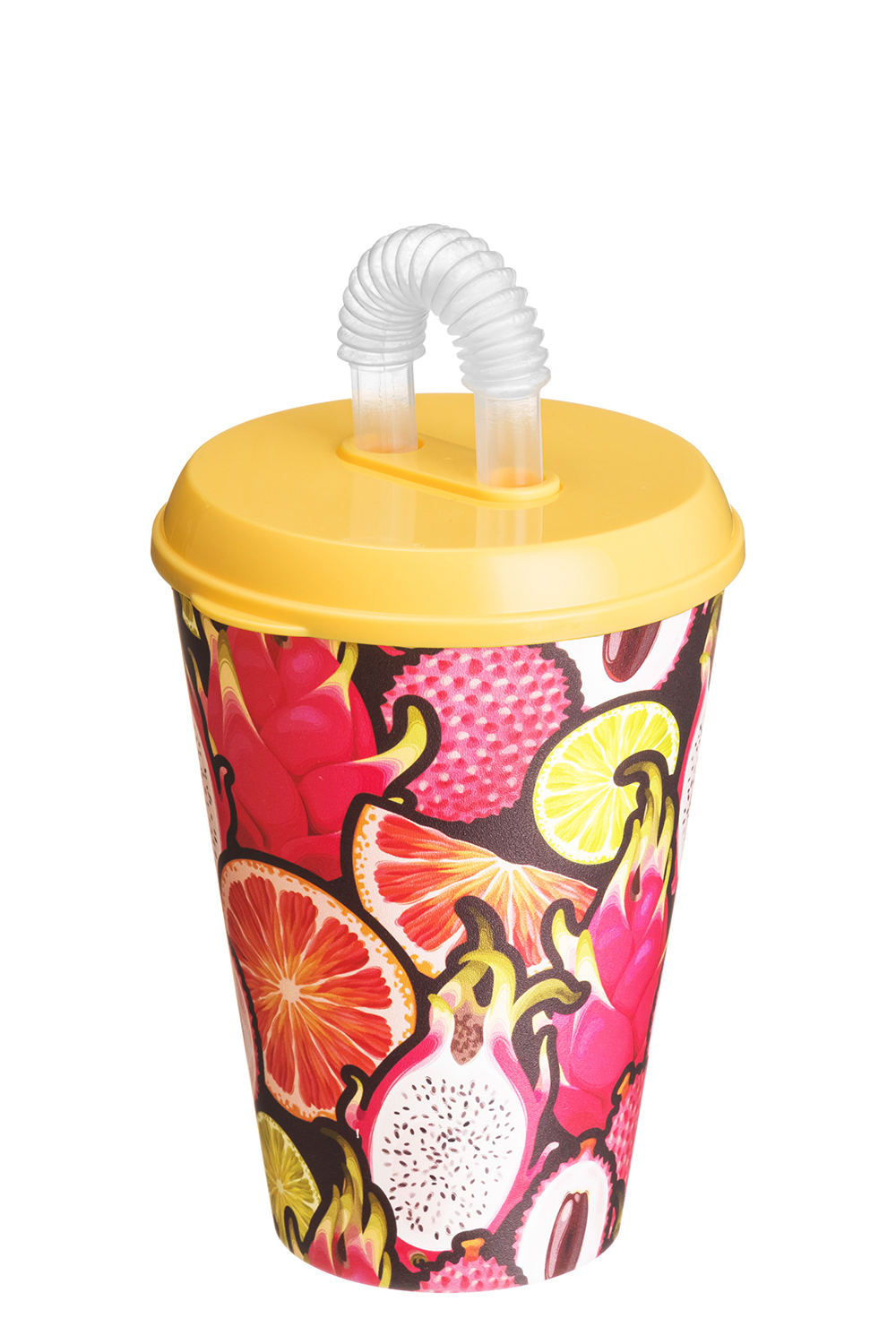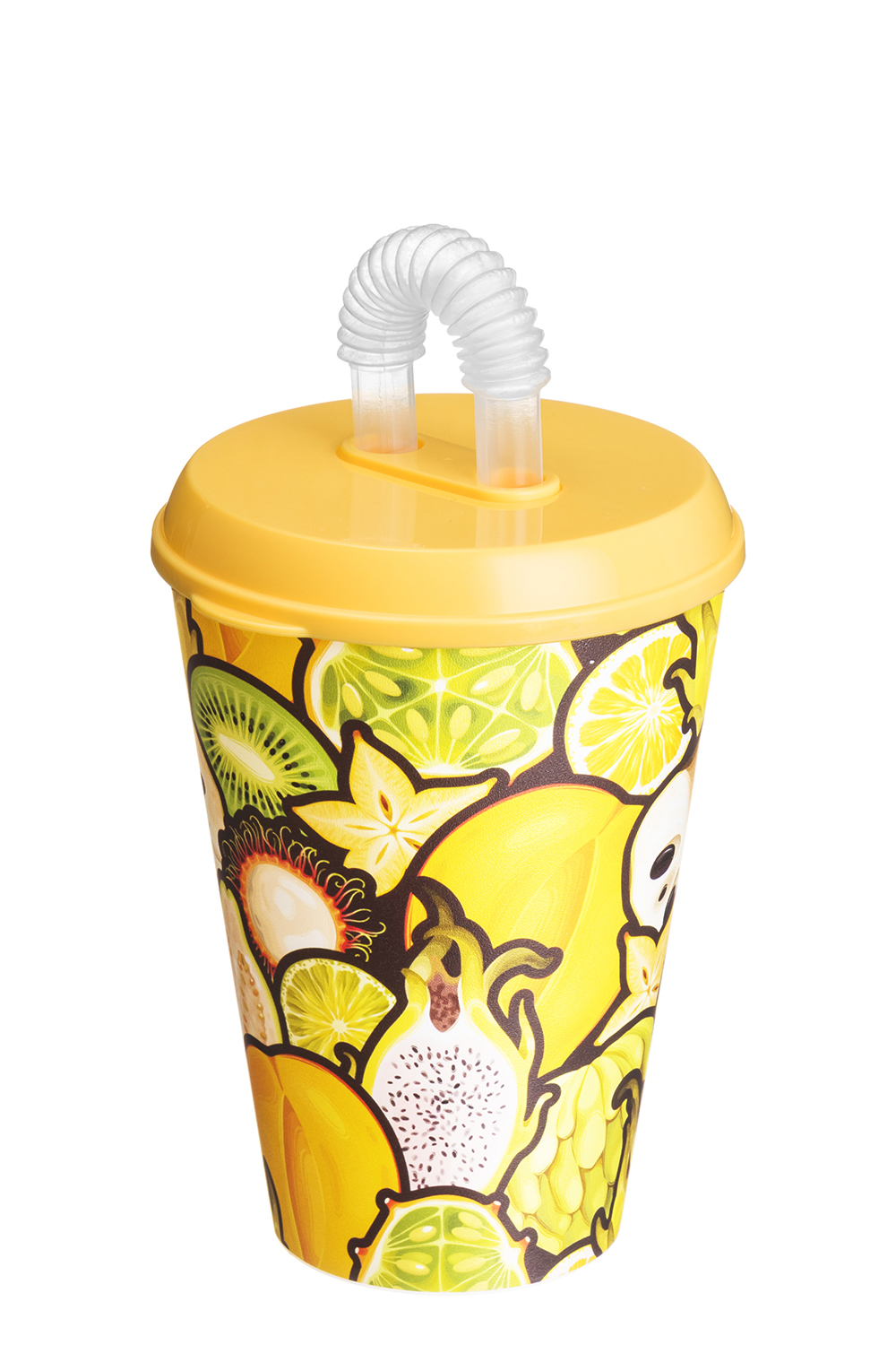 Стакан пласт. IZI-GO 420мл с крышкой и трубочкой с декором желтый Хомвер 222100503/01