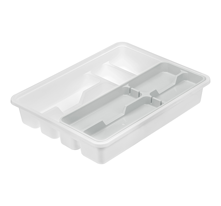Двухуровневый лоток для приборов помогает поддерживать порядок на кухне, разделяя столовые приборы по своим местам. Вкладыш -это дополнительное место для хранения, которое не увеличивает ширину лотка. Столовые приборы, которые лежат в нижней части, удобно доставать, т.к вкладыш легко сдвигается в сторону или вынимается из лотка.