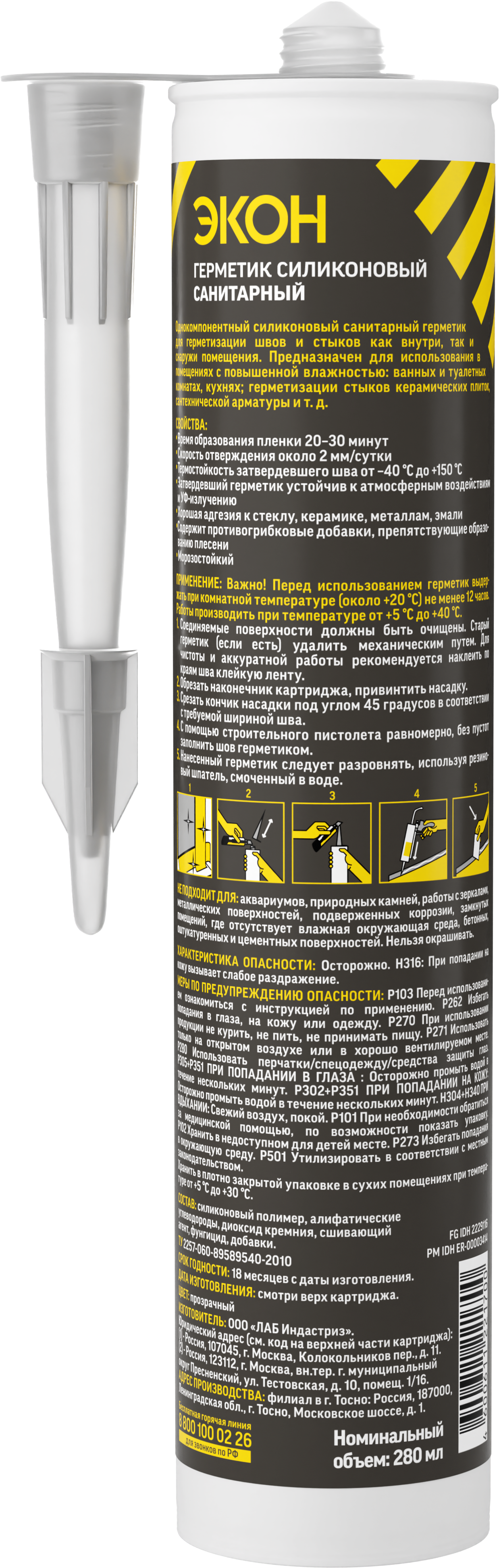 Герметик силиконовый санитарный ЭКОН прозрачный 280мл /2229116/