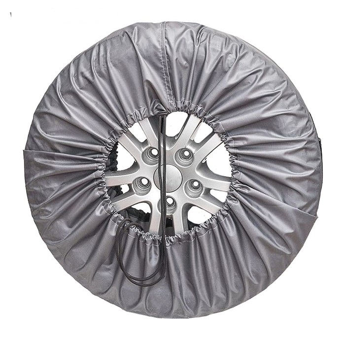 Автомобильные чехлы для шин произведены из крепкого влагостойкого материла. Подойдут для шин с размером диска R 16-21. Чехлы предназначены для хранения зимней / летней резины в чистом сухом виде. Чехлы обладают УФ защитой. Благодаря влагостойкости материала- чехлы спасают колёса от разрушения. Круглая форма защитного чехла на резинке отлично подойдет для тех, кто любит минимализм. Чехлы плотно облегают колесо независимо от его радиуса благодаря возможности регулирования размера с помощью липучки и регулирующей верёвки; Среди всех авто товаров и товаров для хранения вещей преимуществом чехлов для шин является практичность.